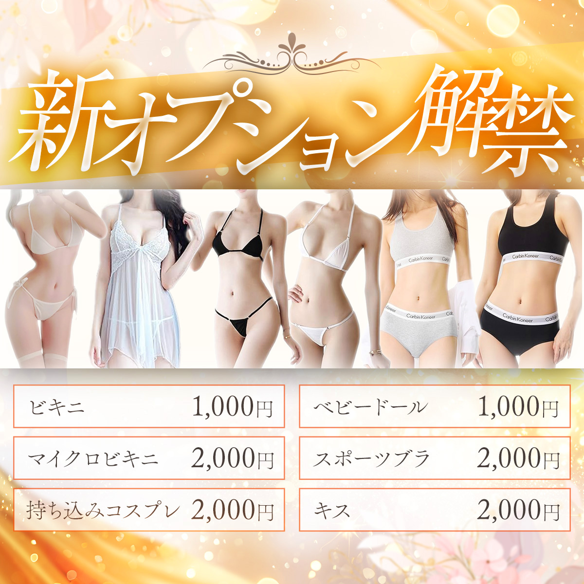 【THERAPIST】新オプション解禁2025/12/30 20:43 THERAPIST ~高級エステ セラピスト~ 『新オプション解禁』 皆様待望のオプションが 2026年 ついに解禁されました。 【¥1,000円オプション】 ビキニ ベビードール 【¥2,000円オプション】 マイクロビキニ スポーツブラ 持ち込みコスプレ キス ※キスは一部女性NGになります。 各女性のプロフィールをご参照ください。
